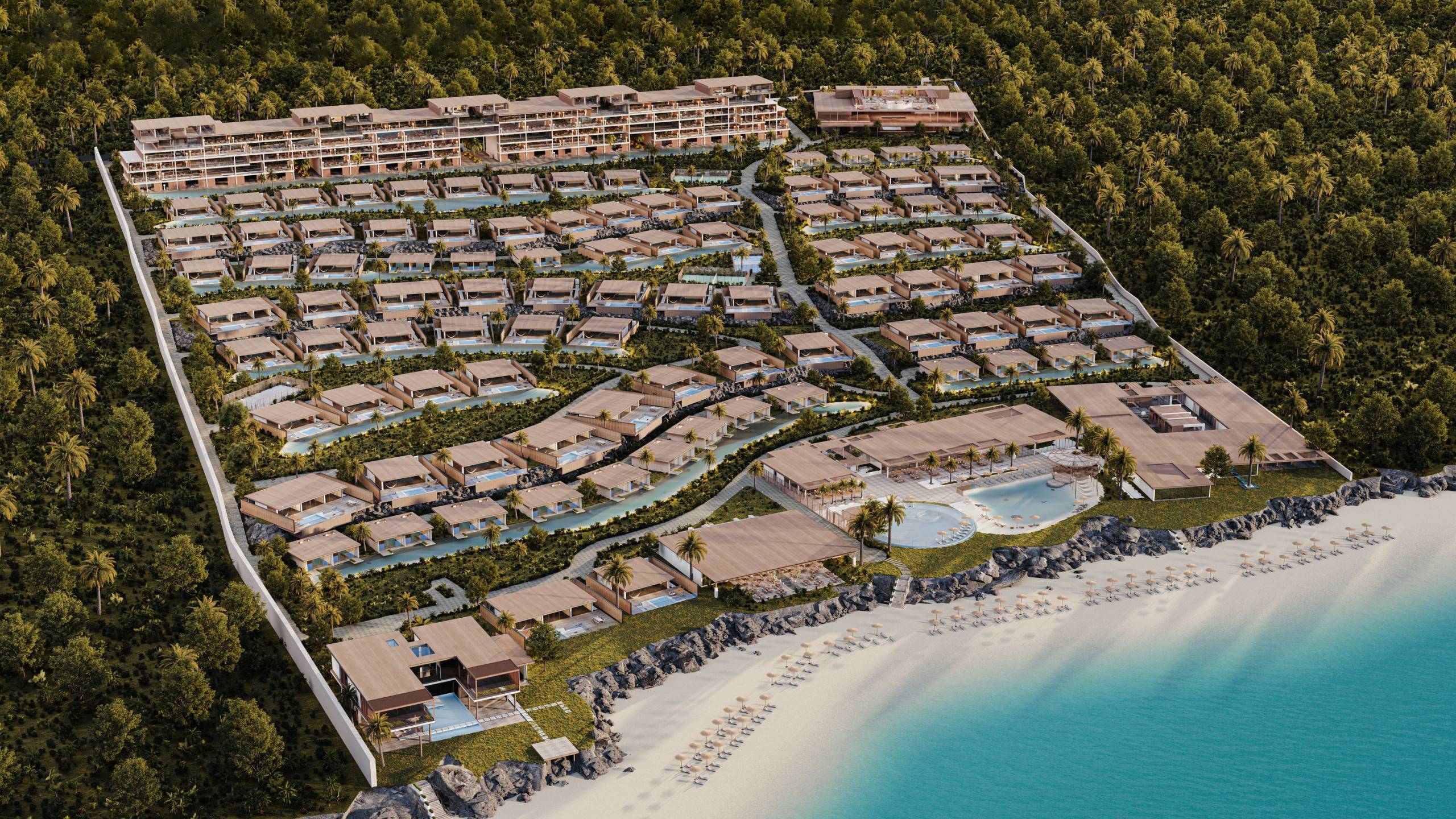 Beach club with ocean-edge pool positioned at the ocean’s edge. Spa with treatment rooms and wellness programming. Restaurant and bar operations from day one. Gym with ocean views. Concierge handling everything from airport transfers to boat charters.
